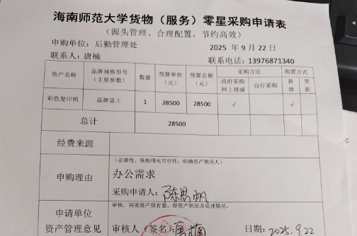 现根据工作需要,经处领导同意采购设备,根据相关采购流程,对所购置的资产进行公示,如有异议,请致电唐老师0898-65819689。
