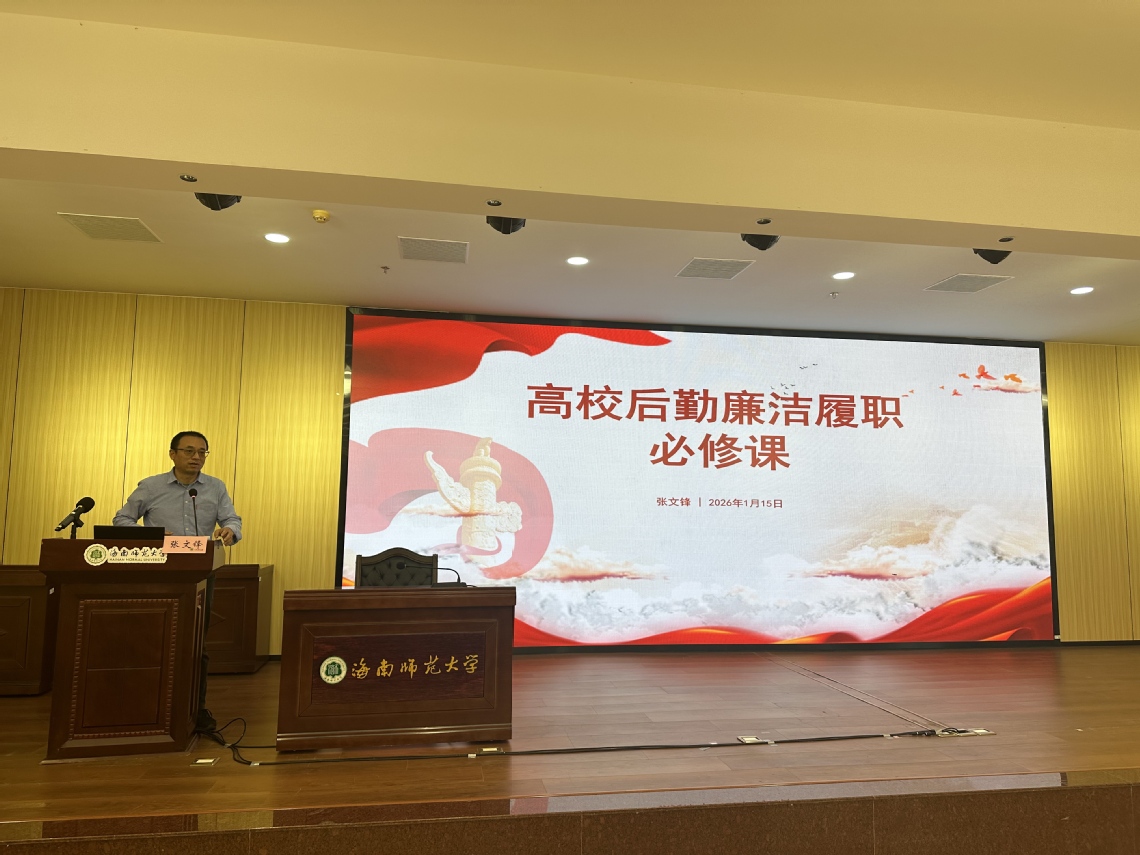 学校纪委副书记张文峰处长作《高校后勤廉洁履职必修课》专题辅导。报告紧密结合当前全面从严治党的新形势与新要求,聚焦高校后勤领域权力运行特点,通过翔实的案例剖析,系统阐释廉洁履职的核心要义:一是清醒认识党员干部身份首先是责任担当,而非荣誉标签;二是明确廉政建设全覆盖,后勤系统没有“旁观者”或“局外人”;三是高度关注管钱、管事、管人等关键岗位的廉洁风险,必须常怀敬畏、慎独慎微。他号召全体人员将廉洁要求内化于心、外化于行,切实筑牢思想防线,提升履职的规范性与免疫力。